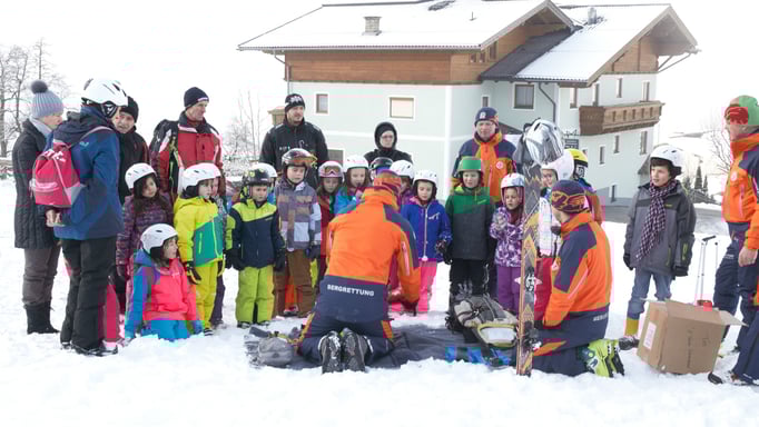 Auch die Bergrettung St. Johann darf da natürlich nicht fehlen. Wir haben bei verschiedenen Stationen den Kindern erklärt, worauf es bei uns im Winter ankommt. Vom Sondieren, LVS Suche, Erste