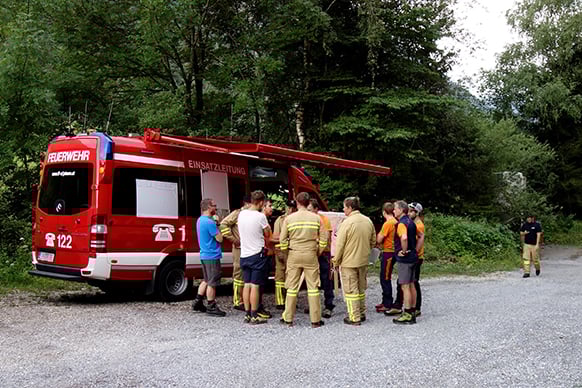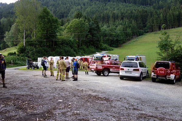 Die über 100 Leute der Suchmannschaften waren mit Suchhunden auf allen Forstwegen, Steigen und Wanderwegen in diesem riesigen Gebiet unterwegs. Im Einsatz war auch die Polizei samt