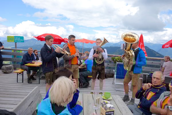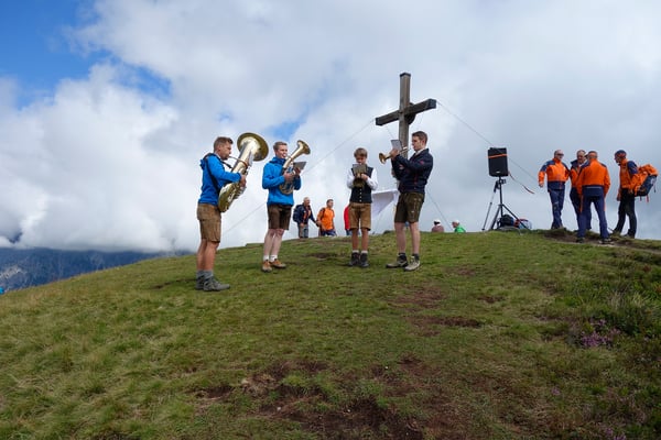 Zur eindrucksvollen Stimmung trugen neben den imposanten Bergspitzen des Hochkönigmassivs auch die musikalische Umrahmung durch die Weisenbläsern der Bergkapelle Mühlbach bei.