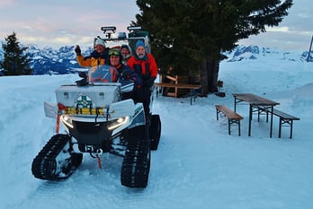Gegen Abend wurden wir zu einem Rettungseinsatz ins Alpendorf gerufen. Es galt eine verletzte Person in Pistennähe zu bergen. Wir sind mit 5 Bergrettern und unserem Quad ausgerückt.