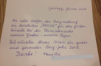 Solche Dankesschreiben sind für uns ein großes Zeichen der Dankbarkeit und wir fühlen uns jedesmal Bestätigt, das sich jede Minute unserer Einsatzbereitschaft auszahlt.