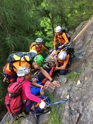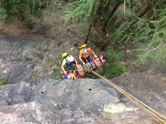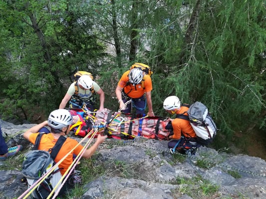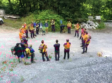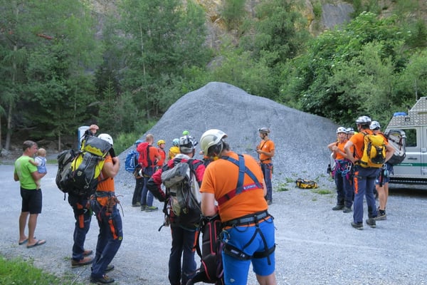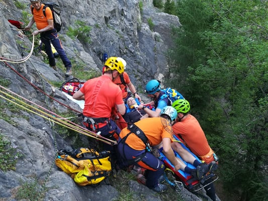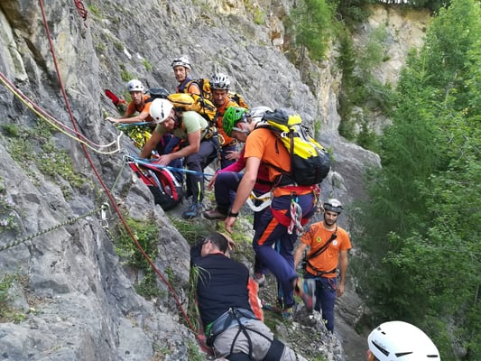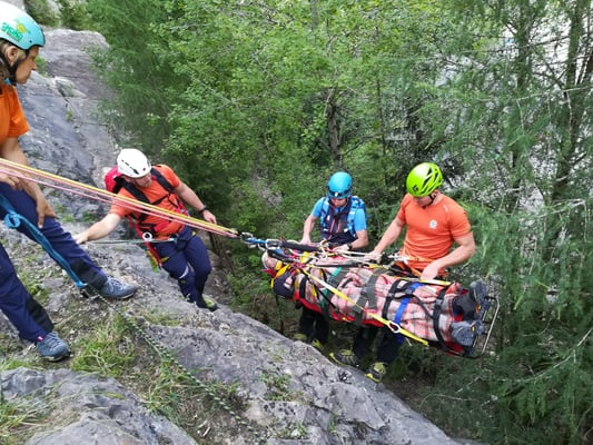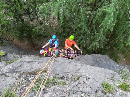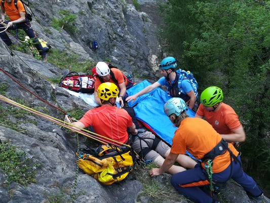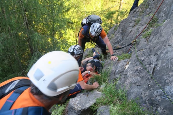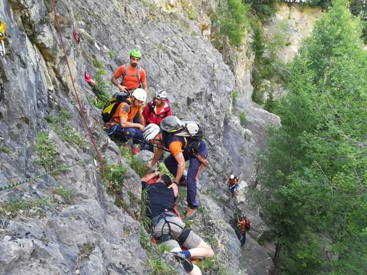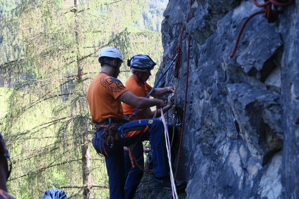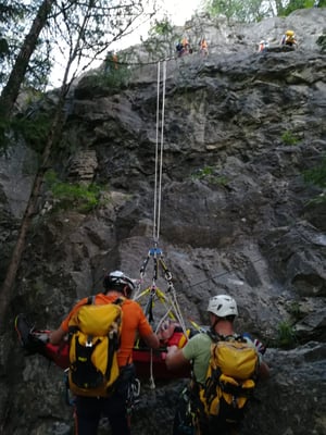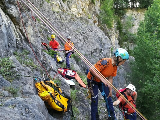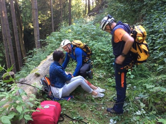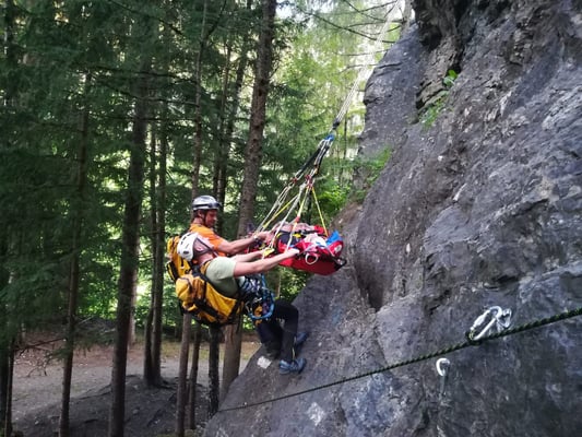 Wir verlegten den Schulungsabend in den Klettergarten St. Veit und trainierten die ERSTE HILFE unter realistischen Bedingungen.