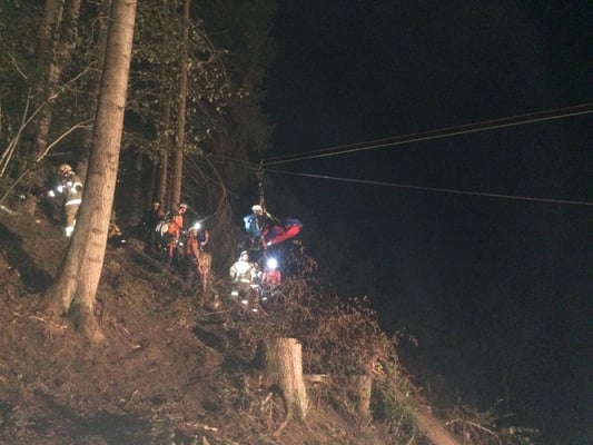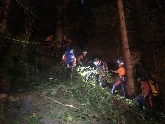 Nach der Ersterkundung des Einsatzortes, galt es als ersten Schritt, den Verunfallten medizinisch zu Versorgen. Ein Teil der Feuerwehr war mit der Befreiung der Person beschäfftigt, während der andere Teil einen befestigten Weg über den Bach und die Bereitstellung der Beleuchtung als Auftrag hatte.