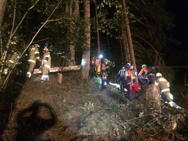 "Forstunfall - eine verletzte Person - Unfallbereich nicht mit Großfahrzeugen erreichbar."