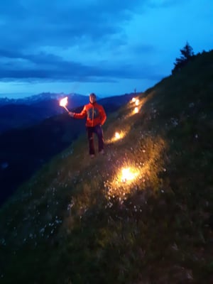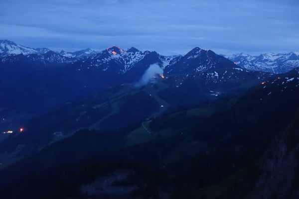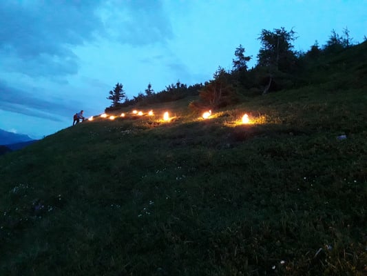 Ein unbeständige Wetterprognose und dunkle Wolken am Himmel verhießen nichts gutes. Dennoch machten wir uns auf den Weg um wie jedes Jahr das Sonnwendfeuer am Gipfelgrates des Tennkogels zu entzünden. Das Wetter hielt aus und die Stimmung war gut. Es sind immer wieder tolle Eindrücke und eine gute Stimmung am Berg.