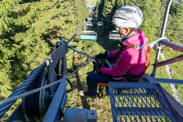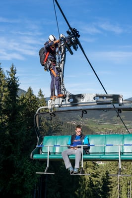 Die Aufgabe der Bergrettung St.Johann war es von insgesamt 3 Spannfelder (Stütze 7 bis 4) die Personen vom 6er-Sessellift Spacejet 1 zu retten.