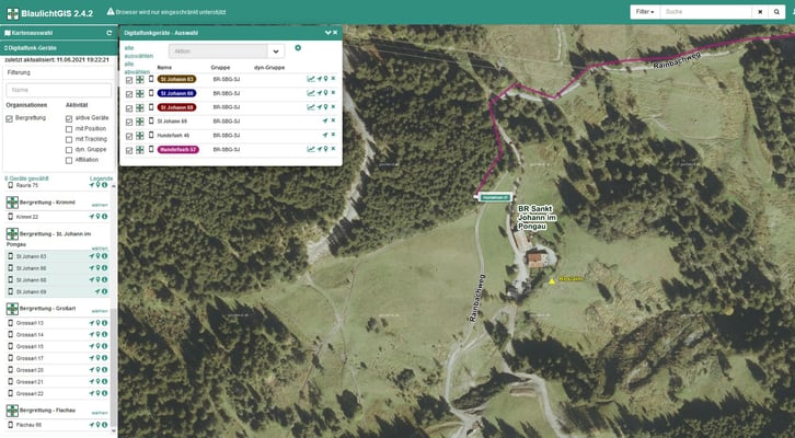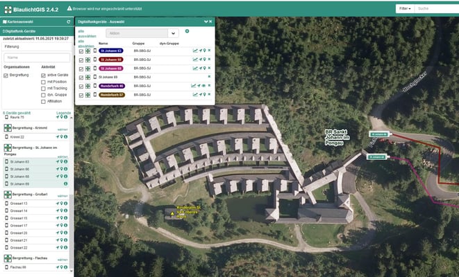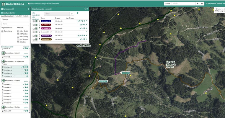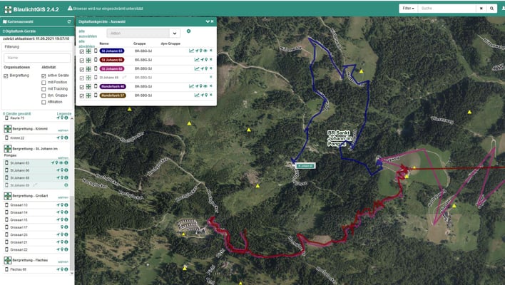 Mittel Digitalfunk, und dem genauen Ortungssystem dieser Funkgeräte, wurden die "Suchmannschaften" überwacht und geleitet.