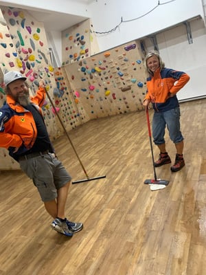 Das starke Unwetter und die ergiebigen Regenfälle, haben ja viele in St. Johann schwer getroffen. Das Hochwasser hat auch uns nicht verschont. Wenn gleich unser Schaden sich in Grenzen hält, verglichen mit vielen andern Einwohnern in St. Johann. Bei uns ist der Keller 20cm tief im Wasser gestanden. Wir konnten aber recht schnell das Wasser absaugen und so schlimmeres verhindern. Nur unsere Bouldermatten konnten wir nicht mehr retten und müssen ausgetauscht werden.