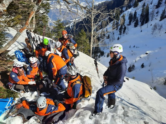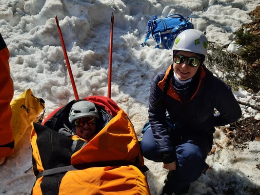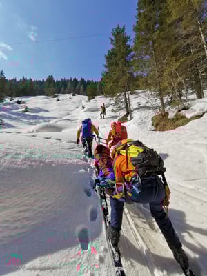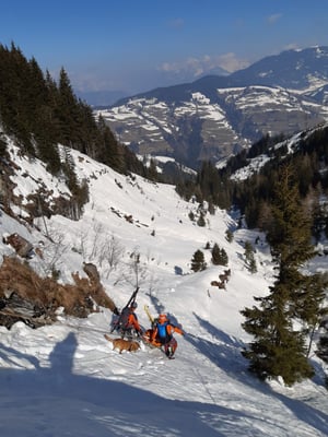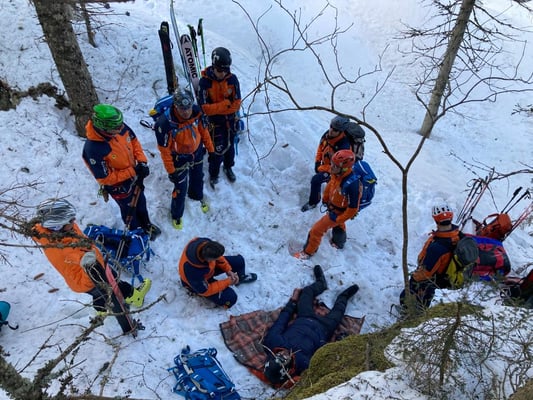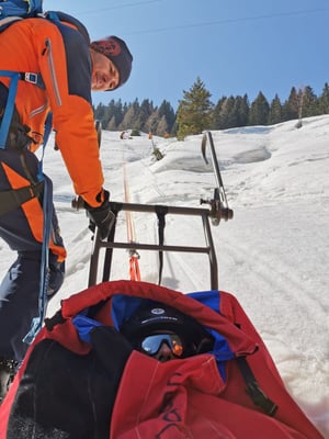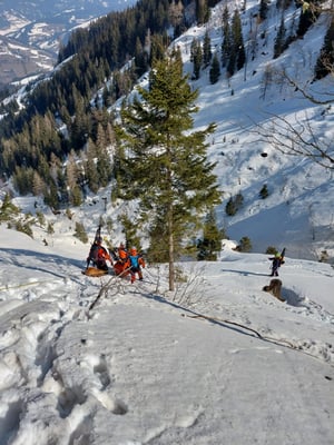Ab Forstweg Hallmoos wurde der Patient mit UT und Skiern zur Talstation Buchaubahn abtransportiert und fiktiv an RK übergeben