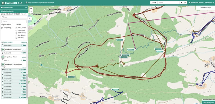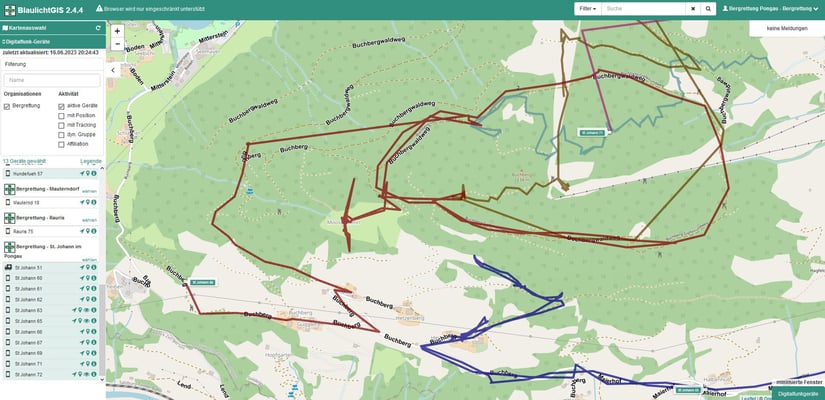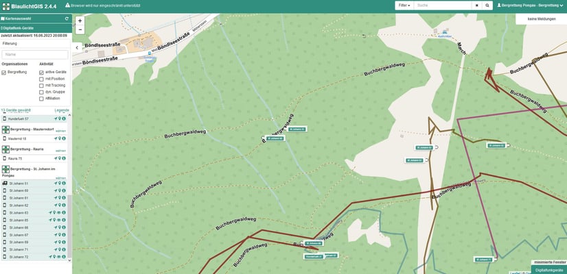 Mit Hilfe von digitalen Karten und "Live-Daten", die wir von den Funkgeräten bekommen, wurden die Trupps am Berg gelotst.