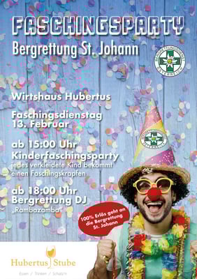 Die Bergrettung St. Johann freut sich auf zahlreiche Besucher und einen fröhlichen Faschingsdienstag im Wirtshaus Hubertus. Ein herzliches Dankeschön geht an das Wirtshaus Hubertus für die großzügige Unterstützung dieser Veranstaltung.
