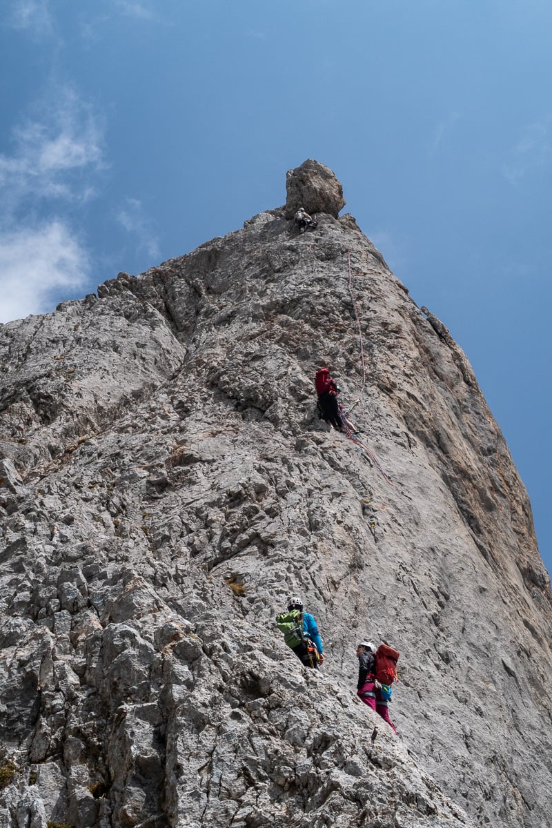 Trainiert wurden unter anderem die Tourenplanung, der Ablauf in der Seilschaft, der Aufbau von Standplätzen sowie Seilmanagement und Sicherungstechnik. Besonderes Augenmerk lag auf klarer Kommunikation, einer sinnvollen Rollenverteilung und dem sicheren Nachsichern der Nachsteiger.