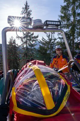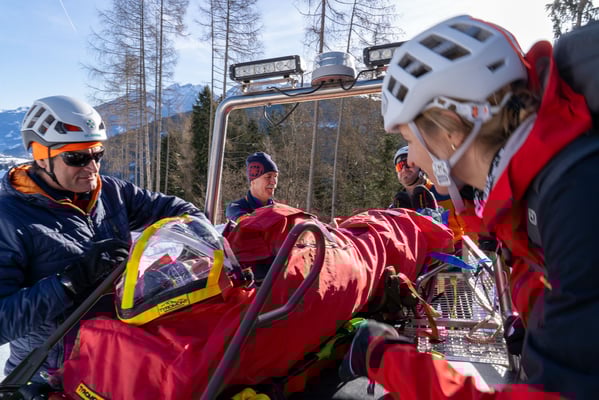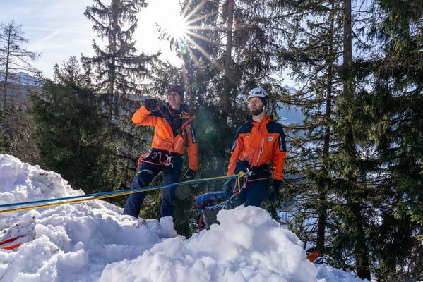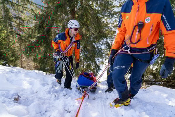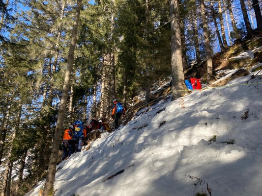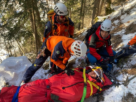 In einem der Suchsektoren fanden wir eine unterkühlte, verletzte Person, die wir erstversorgten und anschließend terrestrisch aus dem Gelände brachten. Erst im Zuge der Versorgung stellte sich heraus, dass es sich dabei nicht um die eigentlich gesuchte Person handelte. Diese Situation forderte die Mannschaft, flexibel zu reagieren und die Suche fortzusetzen.