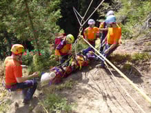 Bergung durch die Bergrettung mit Übergabe und Versorgung durchs Rote Kreuz. So lautet die Übungsannahme.